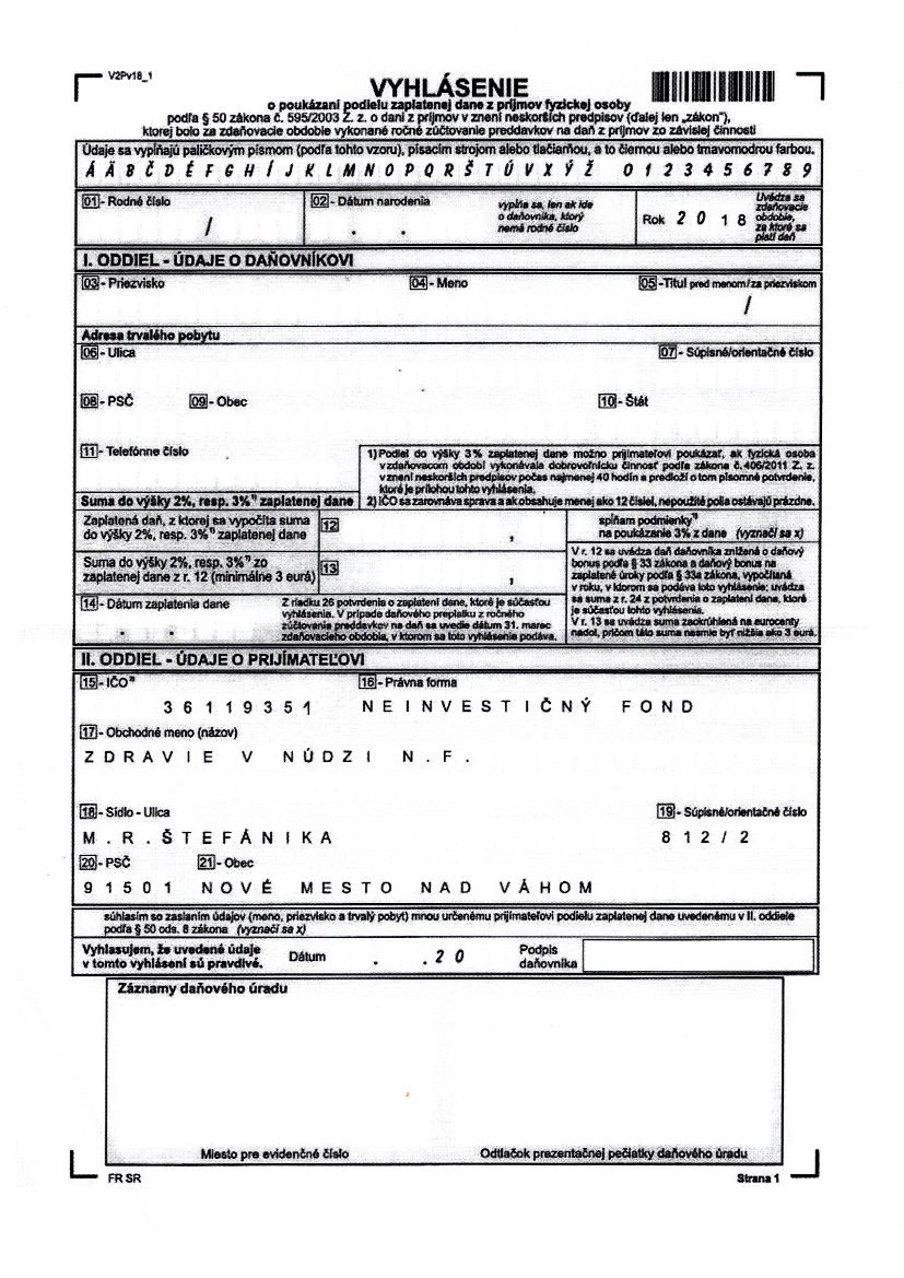 Darovanie 2% dane NsP Nové mesto nad váhom